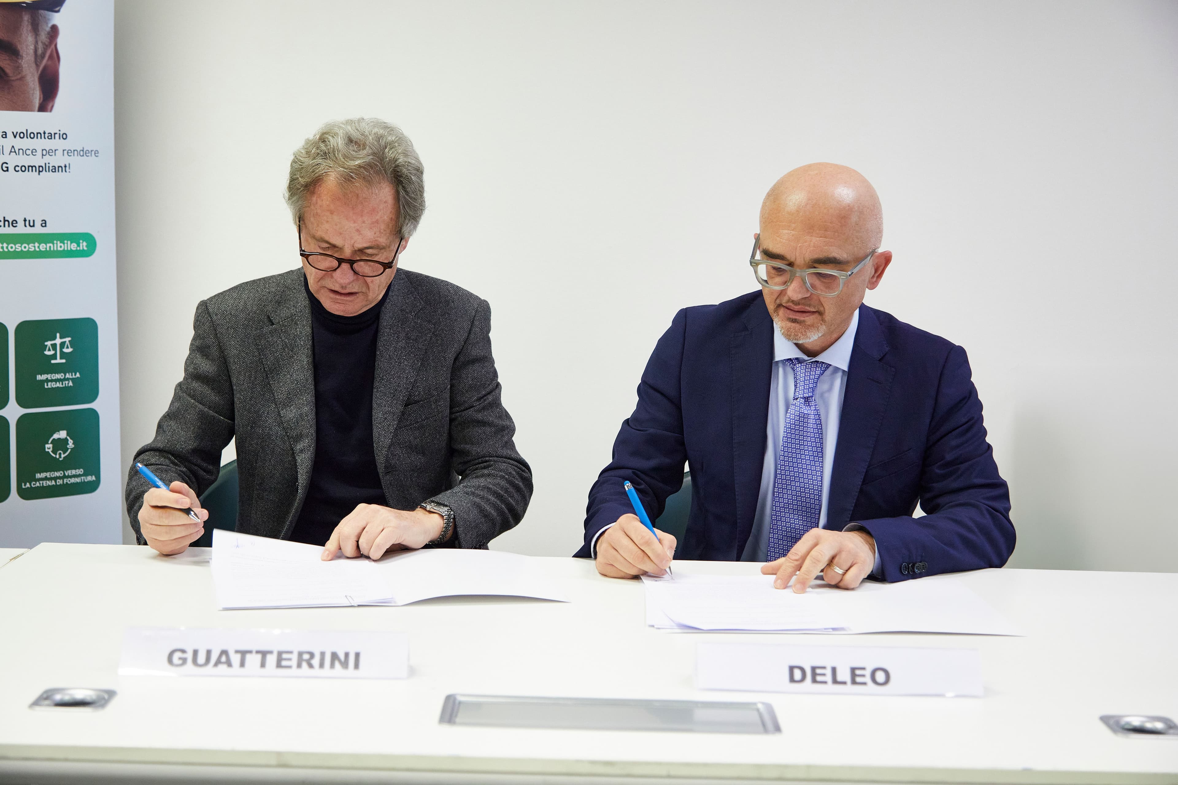 Renato Guatterini, Presidente di ANCE Bergamo, e Giovanni Deleo, Presidente di Assimpredil Ance, hanno sottoscritto, il protocollo del Codice di Condotta CIS – Cantiere Impatto Sostenibile.